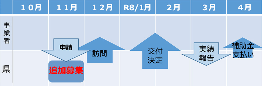 - 概算払いは実施いたしません。追加募集は1施設分の予算額となっています。