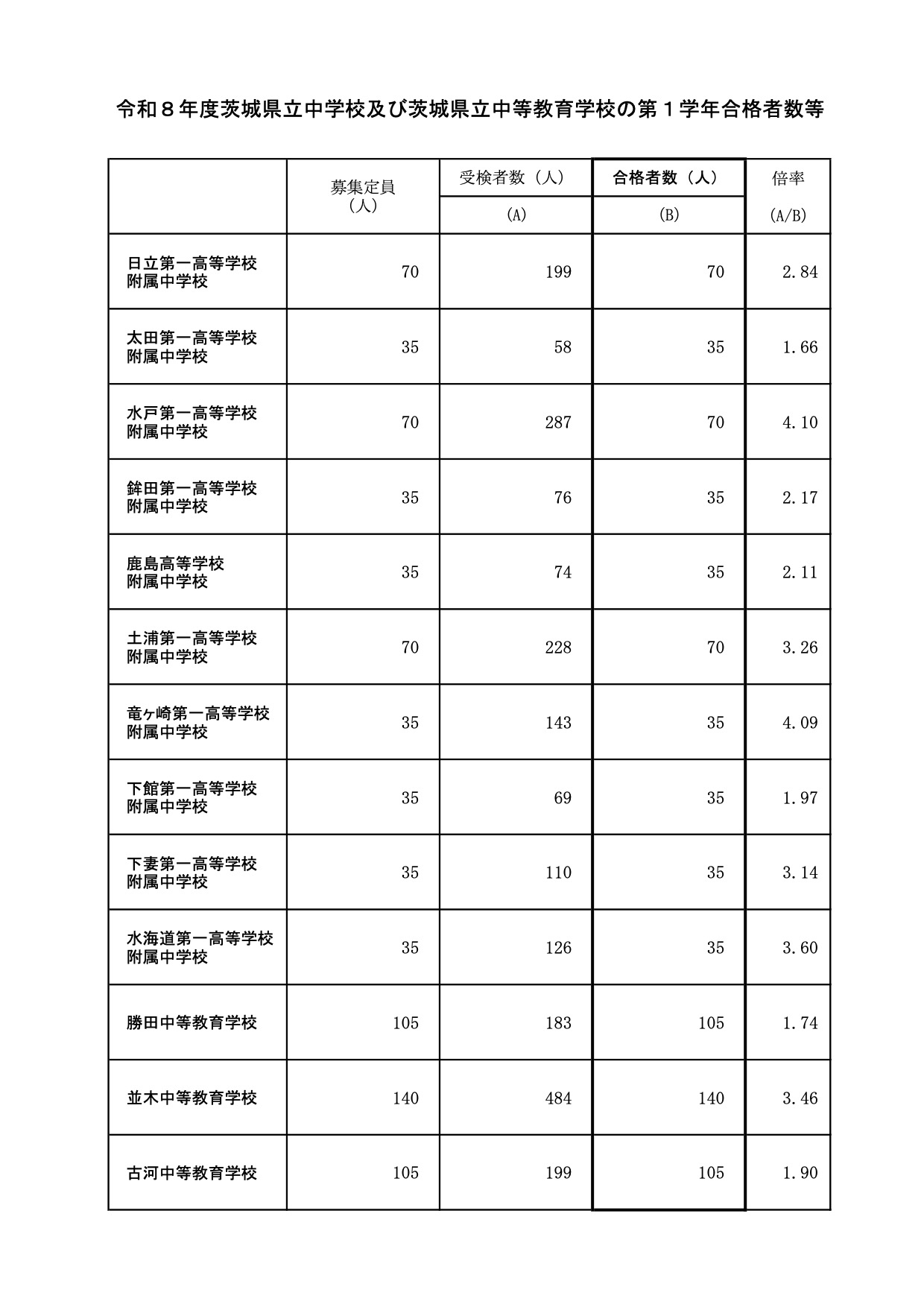 第1学年合格者数等