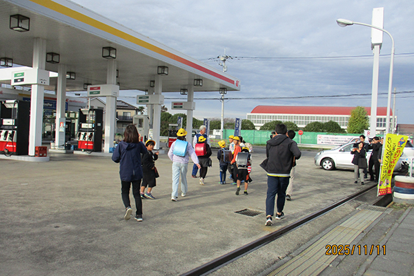 11月11日(火)、つくばみらい市立豊小学校において、地域のガソリンスタンドと連携した防犯教室が行われました。これは、児童が不審者と遭遇した際の対応を学ぶとともに、「かけこみ110番」の周知とガソリンスタンドを拠点とした地域の防犯体制作りを目的として、毎年、茨城県石油商業組合社会貢献委員会が主催し、実施しているものです。