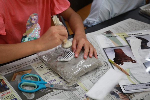 1回目は、縄文土器について作り方や使いかたを学び、文様を写し取る「拓本」をとる体験や、縄文土器に文様を付ける「縄文原体」を作ることに挑戦しました。2回目は縄文土器を一人一人が実際に作る体験をしました。