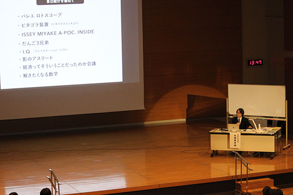 第1部では、東京藝術大学名誉教授の佐藤雅彦氏を講師にお迎えし、「作り方を作る」と題してお話しいただきました。これまで手掛けてこられた映像作品をふんだんに取り入れ、子どもから大人まで楽しめる講義となりました。特に幼児向け教育番組「ピタゴラスイッチ」内の人気コンテンツ「ビーだま・ビーすけの大冒険」や日本オリンピックミュージアム「Shadows as Athletes」の映像が流れると、会場からは感動の声が上がりました。